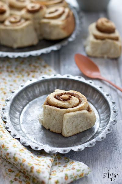Esperar que algo leve en mi casa es como esperar un milagro, pero esta vez el sol quiso salir y ha calentado un ratito suficiente como para que la masa leve y todo eso. He de admitir que tiene su mérito que haya hecho estos Cinnamon Rolls y es que a lo frío de mi casa hay que sumarle mi falta de paciencia para con las masas y mi aún más notable falta de tiempo, es muy raro que pueda esperar a los levados, desgasificar, volver a levar... Pero voilà rollos de canela al canto, como cuando vivía en Londres que los solía comer cada dos por tres. Que por cierto... si multiplico los años que pasé por el número de... ejem... eso da michelines seguro, ¿no?