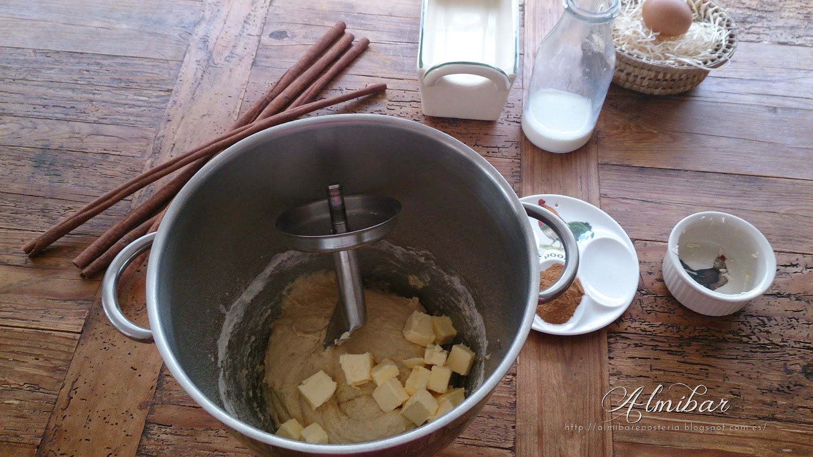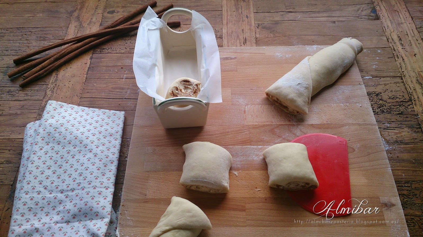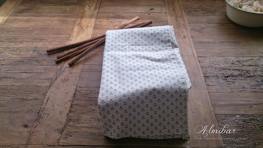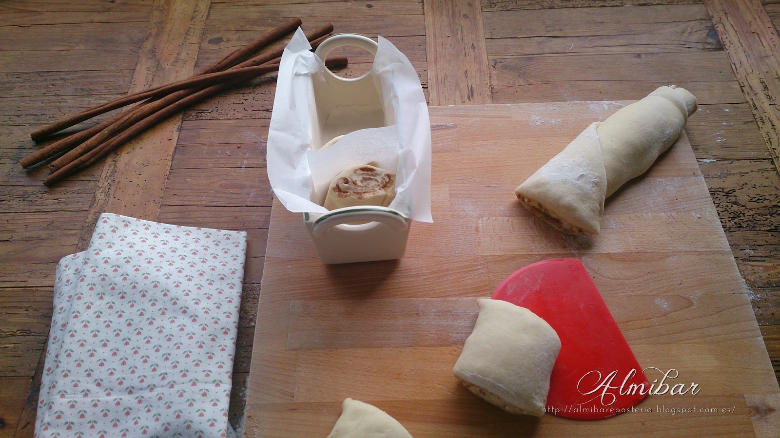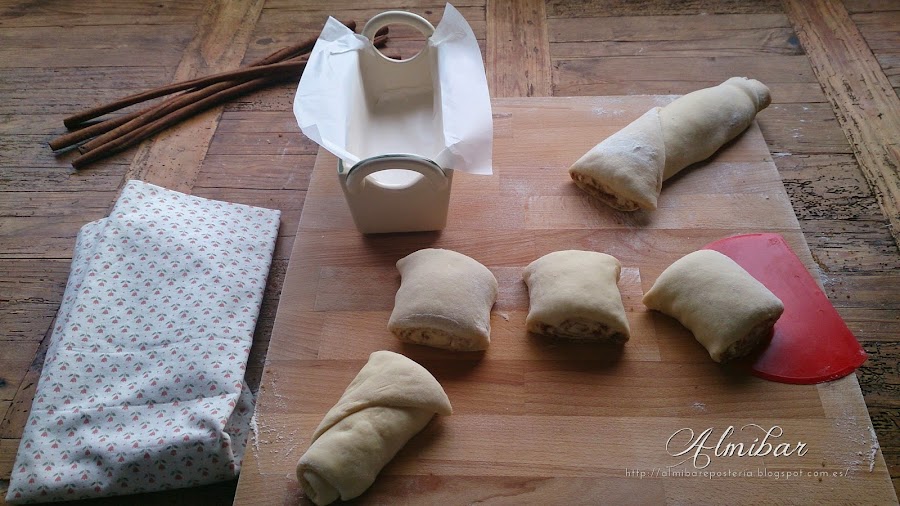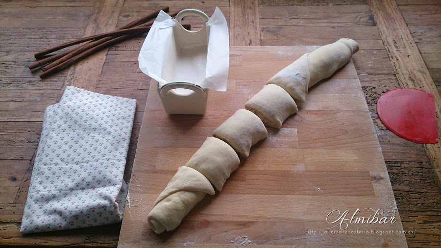 ...rellena con la mezcla de azúcar y canela la masa estirada con mantequilla...