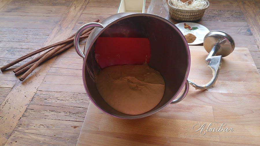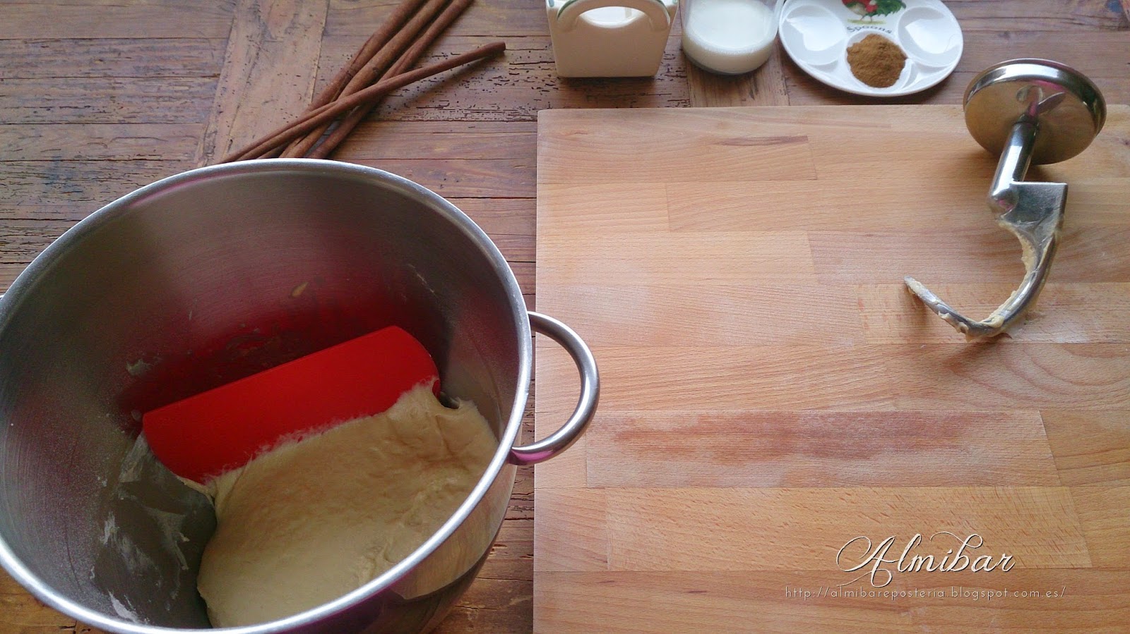 ...con ayuda de una rasqueta despegas la masa de las paredes del recipiente...