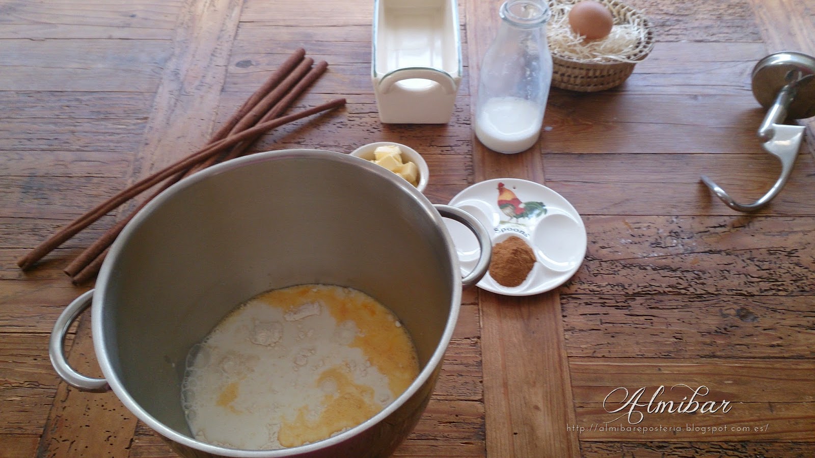 ...añades la leche o la nata (crema de leche) a temperatura ambiente...