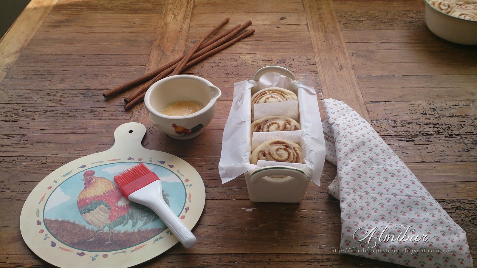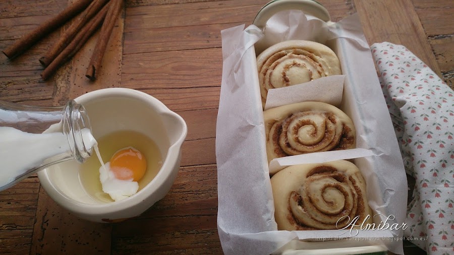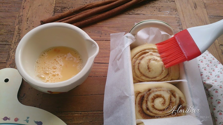 ...pincelas los cinnamon rolls con huevo y leche batidos...