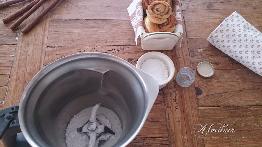 ...y obtienes un glaseado ideal para bañar los cinnamon rolls...
