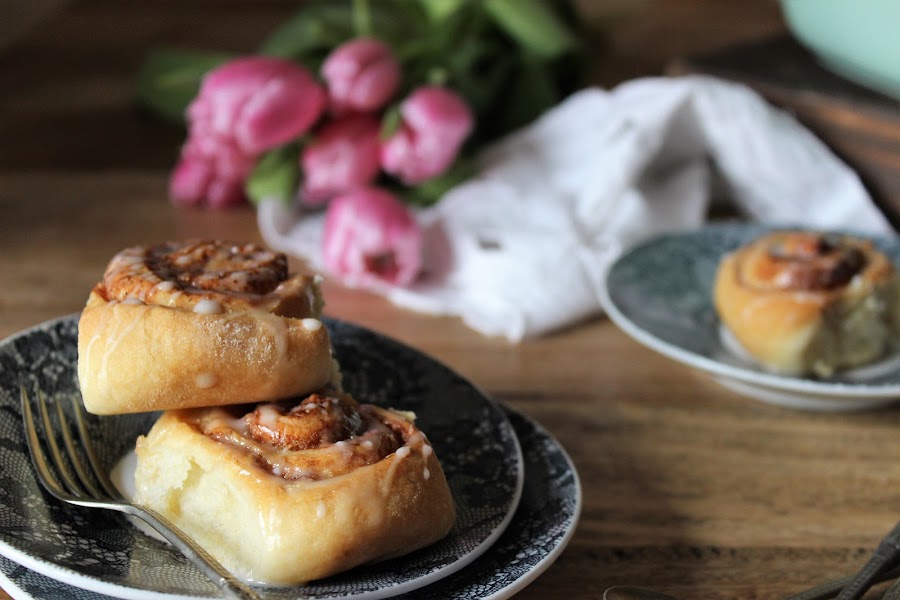Como para todos los platos, existen multitud de recetas, yo hago una muy facilita que queda genial. La masa es muy parecida a la de los brioches, que junto al hojaldre, es una de mis masas preferidas y el relleno se hace con una mezcla de mantequilla, azúcar y bien de canela. Para los más golosos un rico glaseado que te animo a que le pongas porque le da el toque final para hacerlos irresistibles. Se hornean de forma que al crecer se peguen unos a otros y así, al sacar las porciones se despegan y dejan ver la masa tierna y esponjosa.También los puedes hornear individualmente.
