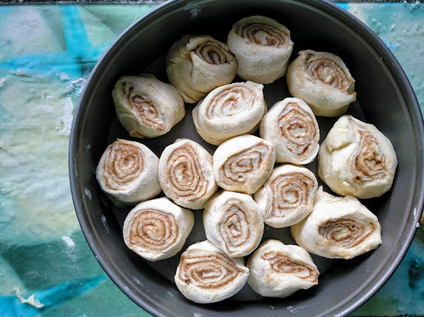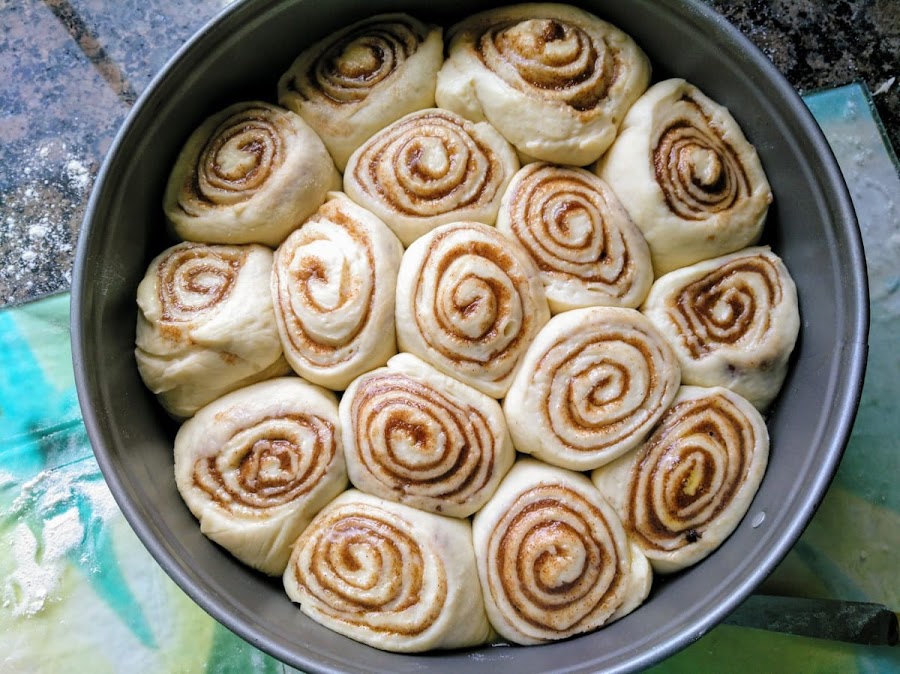 Cuando tengamos todos los rollinos en el molde, lo cubrimos y lo dejamos que doble su volumen. De nuevo los tiempos dependerán de la temperatura ambiente. De todos modos, al utilizarse masa madre, los levados no son tan estrictos como con la levadura, así que tampoco hay que volverse loco atendiendo el levado.