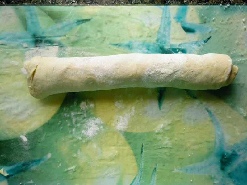 Seguidamente, dividimos el rollo en ocho trozos que cotaremos con un cuchillo.