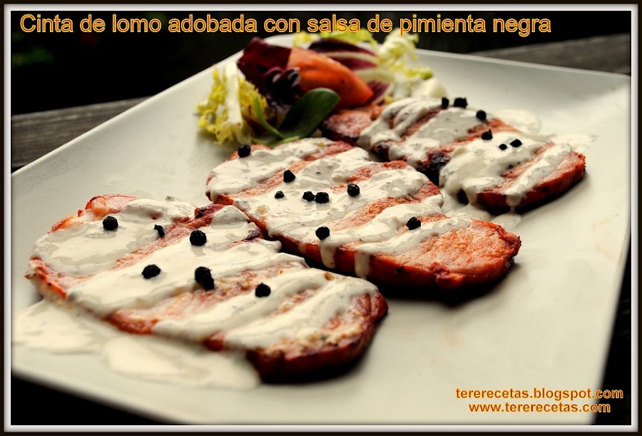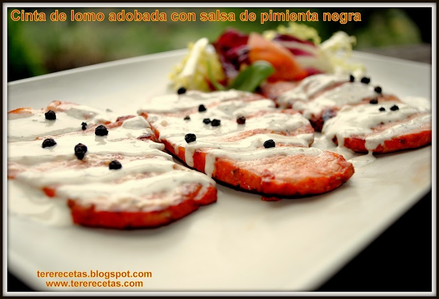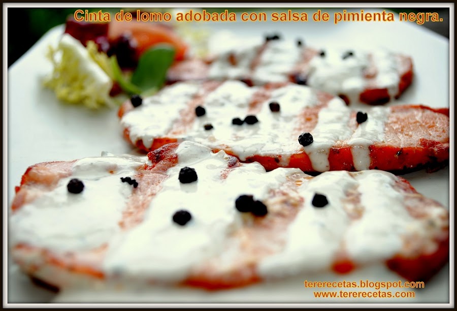 Hola a todos.... Aquí os presento este sencillísimo plato, unos filetes de cinta de lomo adobada, con una rica salsa de pimienta negra al toque de queso roquefort.... No deja a nadie indiferente!!