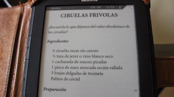 Me ha costado decidirme, he leído muchos libros que contenían recetas ...desde Don quijote de la mancha con sus "duelos y quebrantos" típicos de Castilla la mancha , Fortunata y Jacinta con sus legumbres, Tomates verdes fritos, Como agua para chocolate...y mi siempre admirada Isabel Allende con su Afrodita, seguro que he leído muchos mas y que en estos momentos no recuerdo...