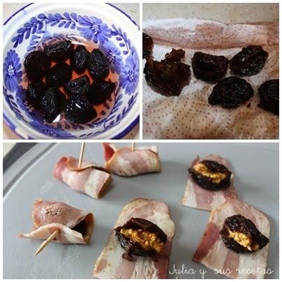 Ponemos las ciruelas en remojo en una taza con el vino blanco durante 2-3 horas. Las sacamos y secamos con papel de cocina.