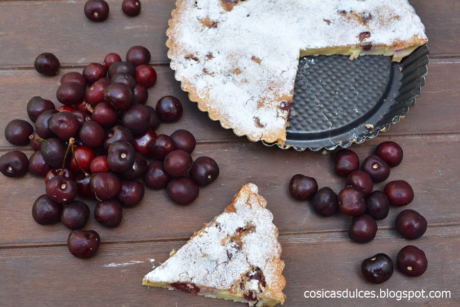 Hace tiempo que quería hacer esta receta y nunca encontraba el momento, pues por fin esta aquí. Una tarta muy sencilla en la que solo tenemos que elaborar, por una parte la masa quebrada y por otra el relleno de nuestra tarta. Justo ahora no estamos en temporada de cerezas, lo se... pero si tenéis muchas ganas de prepararla también podéis buscar cerezas en conserva (que no en almíbar que estarán d ...