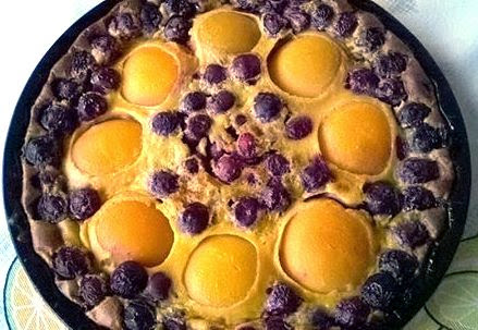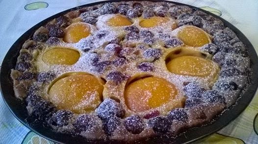 El Clafoutis es un postre francés que combina una crema dulce y fruta madura. Se hornea hasta que cuaja y la fruta se abre.
