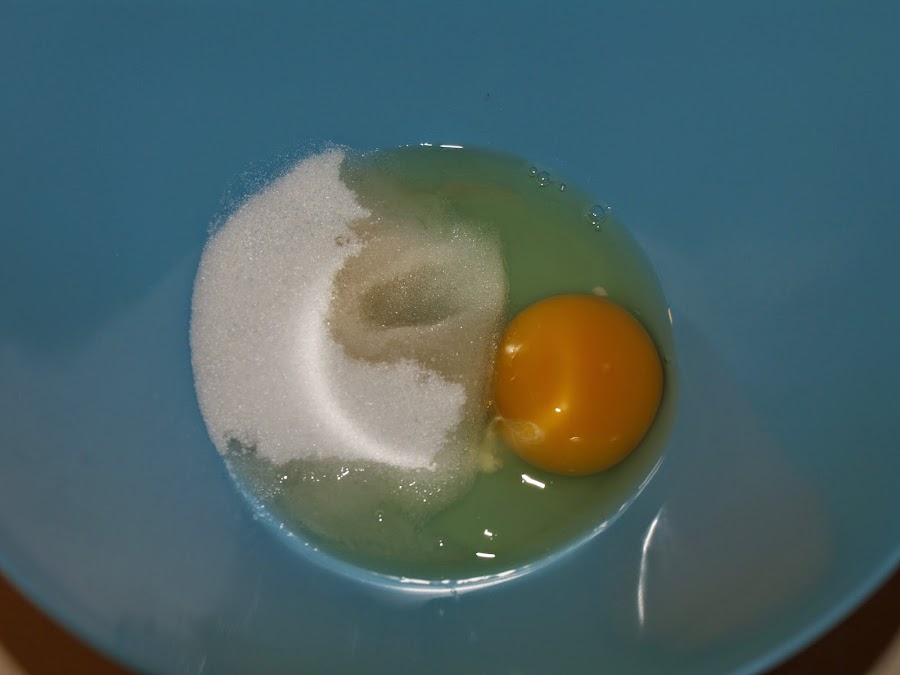 - En un bol batimos el huevo con el edulcorante y la esencia de vainilla.