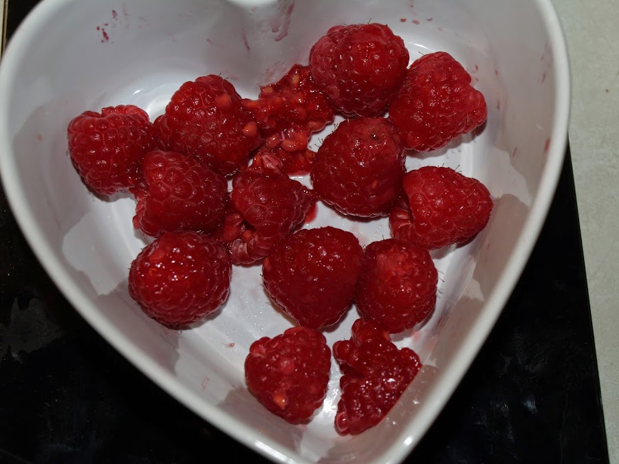 - Colocamos las frambuesas en unos cuencos aptos para horno.