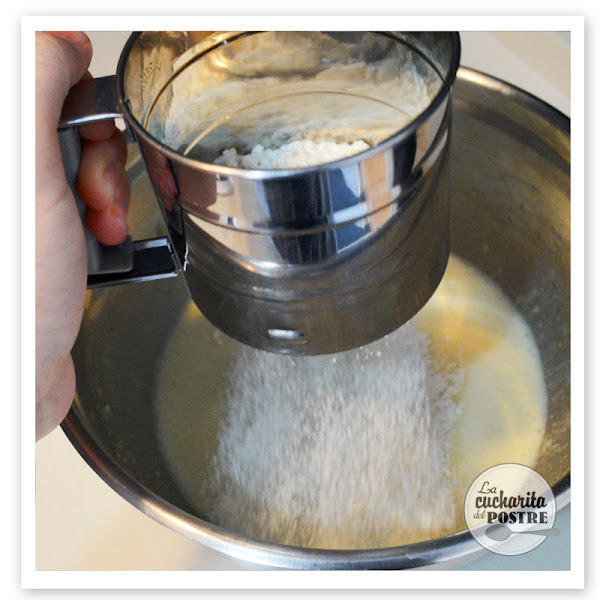 8. Ahora tamiza la harina poco a poco sobre la masa.