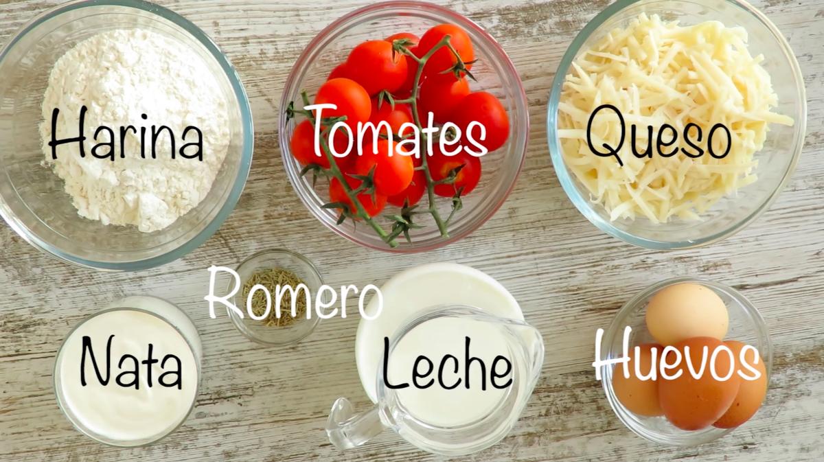 La elaboración es la misma que para el clafoutis de cereza. Empezamos con los elementos líquidos para terminar añadiendo los secos. En un bol mezclamos muy bien los 4 huevos enteros, agregamos la nata (crema de leche), la leche y seguimos removiendo. Tamizamos encima la harina, y por último el queso rallado. Salpimentamos y añadimos el romero.