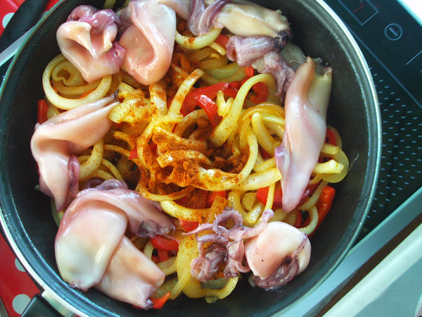 5- Añadimos los calamares y el líquido y cocinamos unos 20 min.