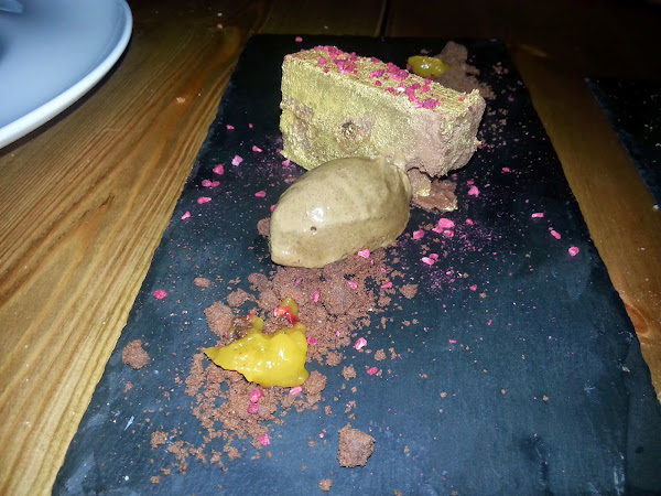 Para finalizar aunque no pedimos café nos invitaron a un pequeño brownie.En general la comida estaba buena aunque las elaboraciones de los platos en algunos casos me parecieron curiosas y sorprendentes en otras creo que no estaba acorde al tipo de cocina que quieren hacer en este gastrobar, ya que era demasiado simple. Le daremos otra oportunidad más adelante.