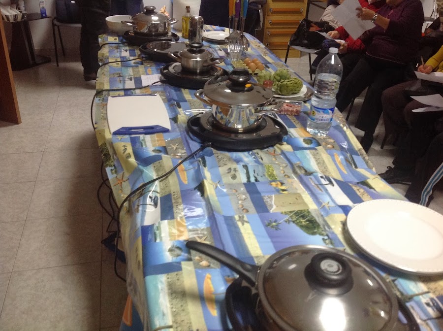 Generalmente son cuatro recetas las que se realizan en cada clase, e incluso se ofrece a los asistentes la posibilidad de que realicen alguna de las mismas o los hacen participar pidiendo aportaciones o experiencias. Lo único que echo de menos es que hubieran más asistentes masculinos, ya que normalmente estoy yo solo. Desde aquí mi agradecimiento a ese equipo humano que cada tarde de martes hace que aprendamos más y que probemos a realizar nuevos platos. Todos estos platos y su recetas os los iré poniendo aquí en el Blog junto con otros que estamos adaptando de nuestra cocina tradicional.