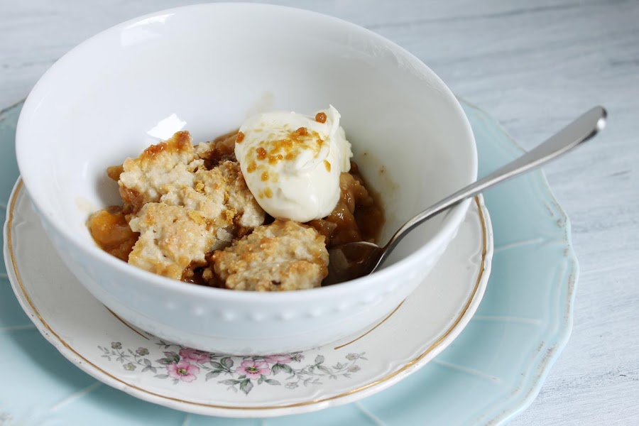 Básicamente es fruta cocida en un recipiente, que va a la mesa, con una masa en porciones por encima. Simple, rico y se prepara en muy poco tiempo. Y las variaciones son tantas como quieran.