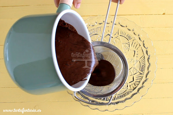 y colaremos, evitando de esta forma que quede algún trocito de chocolate sin diluir en la cobertura.