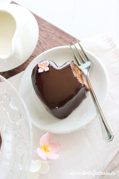 Los bizcochos que he usado para esta ocasión han sido dos, para la tarta más grande, la circular, el bizcocho especial para tartas esculpidas, la receta está en el blog y es muy jugoso, para los corazones el bizcocho de chocolate especial para tartas fondant también muy bueno.