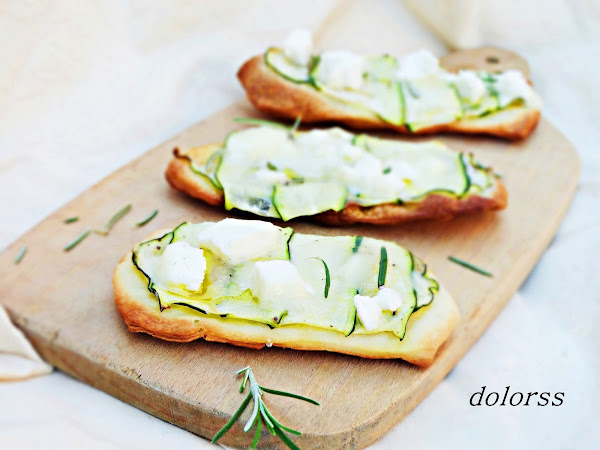 Cortar el calabacín a tiras finas, colocarlas cubriendo la masa.