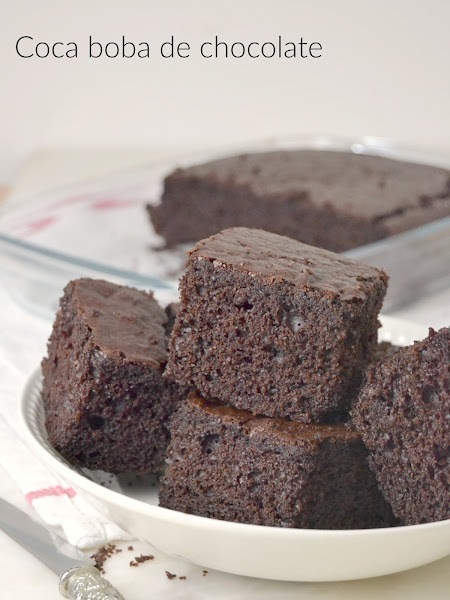 De este blog me tentaron varias recetas.. sus mermeladas, sus fogases y algún que otro plato salado pero, en los días que estamos y con el poco tiempo que tenia, al final me decidí por esta Coca boba o coca en llanda de chocolate. Un bizcocho tradicional valenciano que se prepara en nada ¡Y que queda riquísimo!