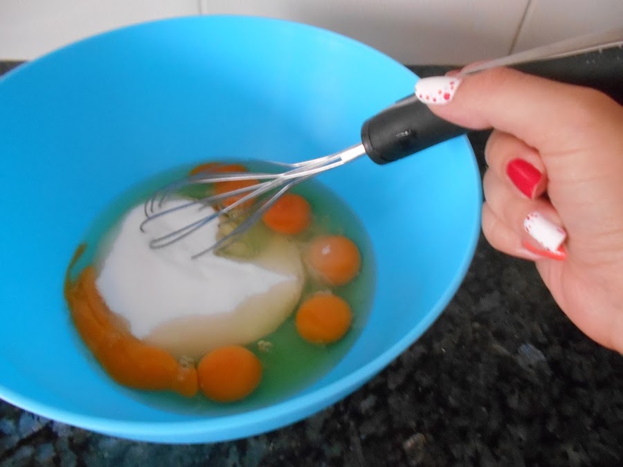 Batimos los huevos con el azúcar hasta blanquearlos.