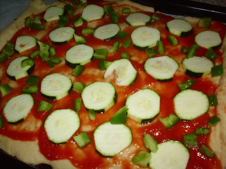 en este caso , tomate de bote triturado , pimiento ,calabacin y sal