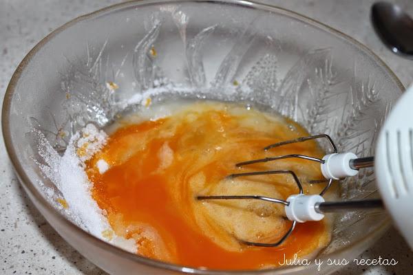 Batimos los huevos con el azúcar hasta que queden espumosos.