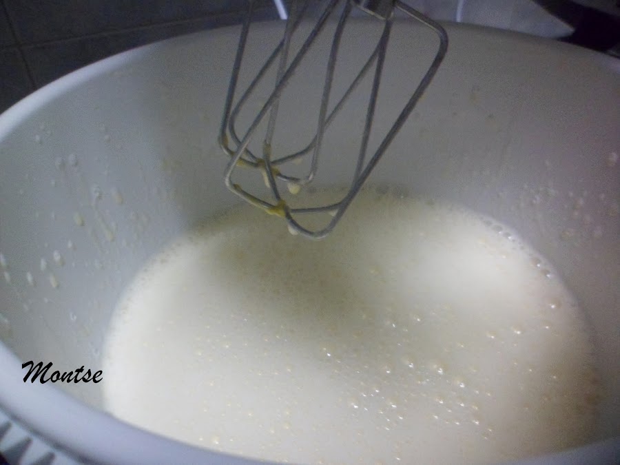 Después iremos echando la leche y batimos, el aceite y el anís,mezclaremos todo bien.