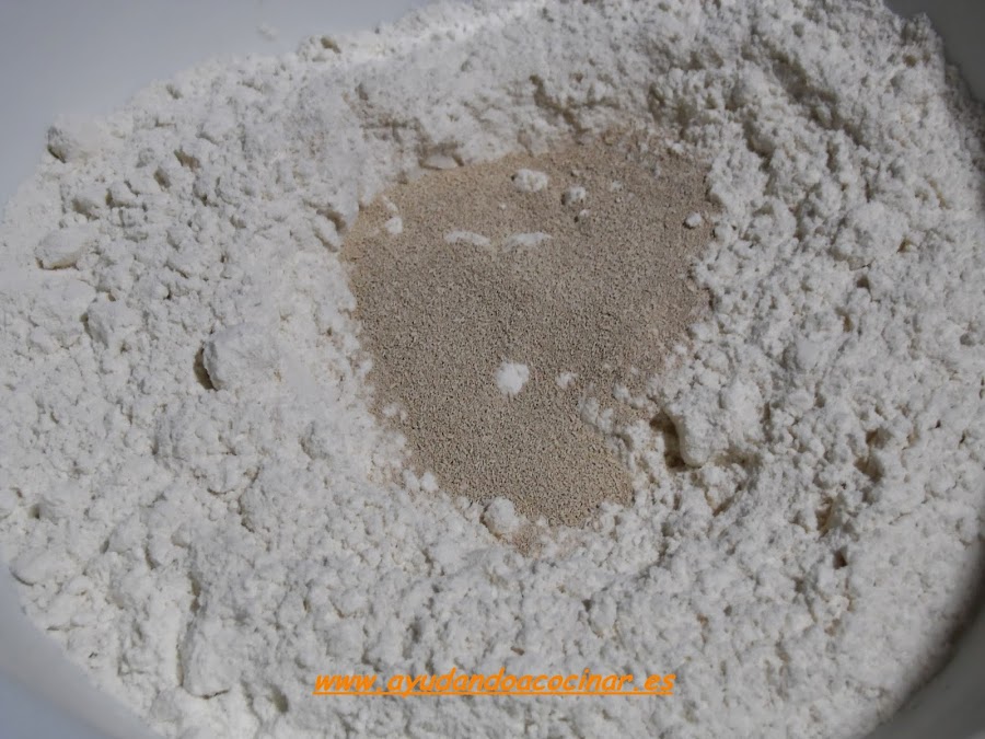 En otro recipiente poner la harina y la levadura seca.