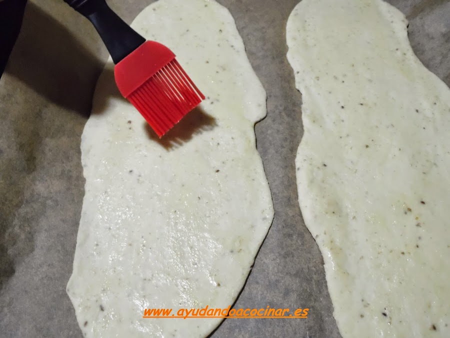 ponerlas en una placa forrada con papel de horno y pintarlas con una brocha mojada en aceite de oliva virgen extra.