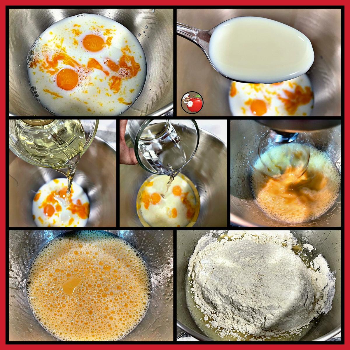 En el bol de la kitcheaid añadimos las yemas, 180 ml de leche, una cucharada sopera de leche condensada, 120 ml de aceite de girasol y 50 ml de anís dulce y lo vamos mezclando con la varilla.