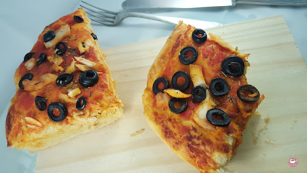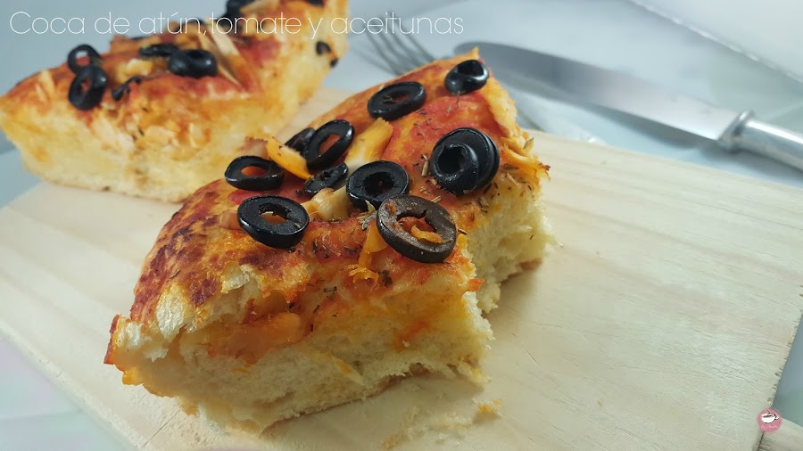 IngredientesPara la masa400 gr de harina10 gr de levadura fresca2 huevos125 gr de aceite de oliva + un chorrito extra125 gr de agua 3 gr de salPara la cobertura de la cocaTomate frito caseroAtún en aceite de olivaAceitunas negrasTomilloRomeroOréganoTemplamos un poco el agua con el aceite. Deshacemos en el líquido la levadura. Incorporamos los huevos y mezclamos bien. Añadimos la harina y la sal y amasamos durante unos 5 minutos hasta obtener una masa lisa y uniforme. Tapamos con un paño y dejamos levar, en un lugar templado, durante dos horas hasta que doble su volumen.Cuando la masa haya levado la volcamos sobre la mesa de trabajo y añadimos el chorrito extra de aceite de oliva. Amasamos de nuevo y estiramos sobre la bandeja del horno forrada con papel vegetal. Extendemos sobre la masa los ingredientes de la cobertura. Extendemos el tomate frito casero sobre la masa. Espolvoreamos con el tomillo y el romero. Colocamos el atún desmenuzado y las aceitunas cortadas en rodajas. Espolvoreamos con orégano y dejamos levar de nuevo durante una hora aproximadamente.Precalentar el horno a 220º. Pasado el segundo levado, bajamos la temperatura del horno a 180º y horneamos, calor arriba y abajo sin aire, durante unos 35-45 minutos.