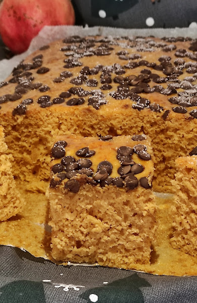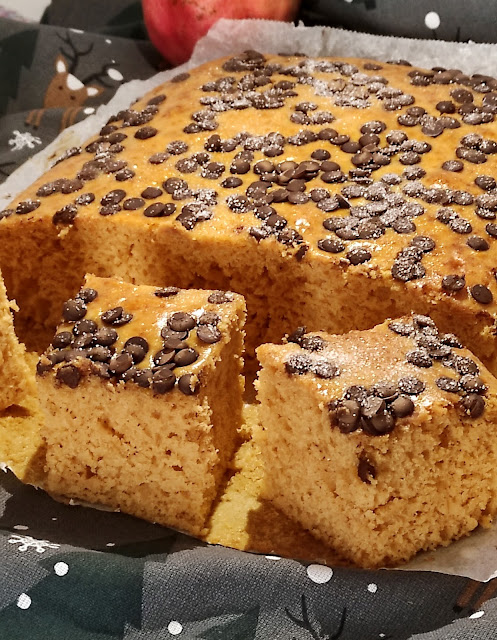 Espolvorea azúcar y canela por encima justo antes de meterla en el horno. Yo le puse gotitas de chocolate.