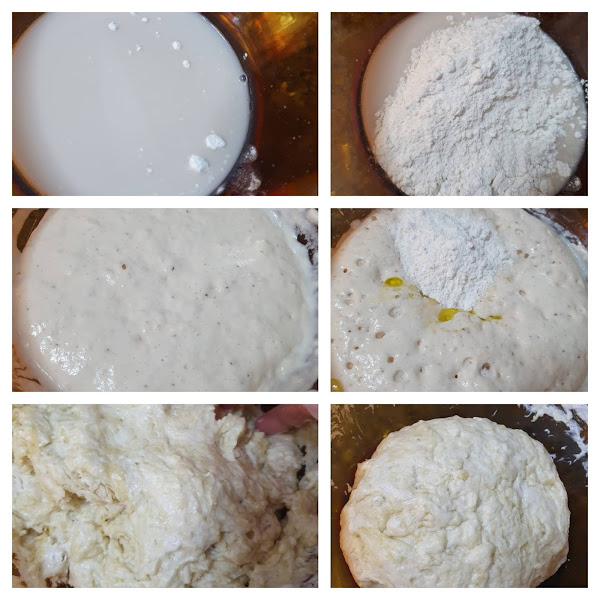 Añadimos el vino blanco o cerveza, el aceite, el resto de harina los 400 gr y la sal.