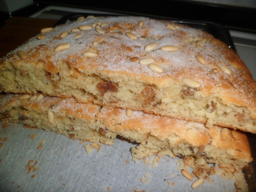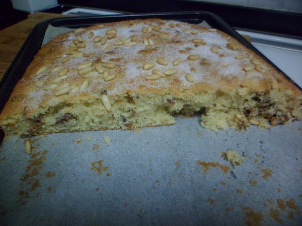 Lo pintaremos con huevo batido, echaremos los piñones y espolvorearemos con azúcar. Lo volveremos a meter al horno, unos 30 minutos.