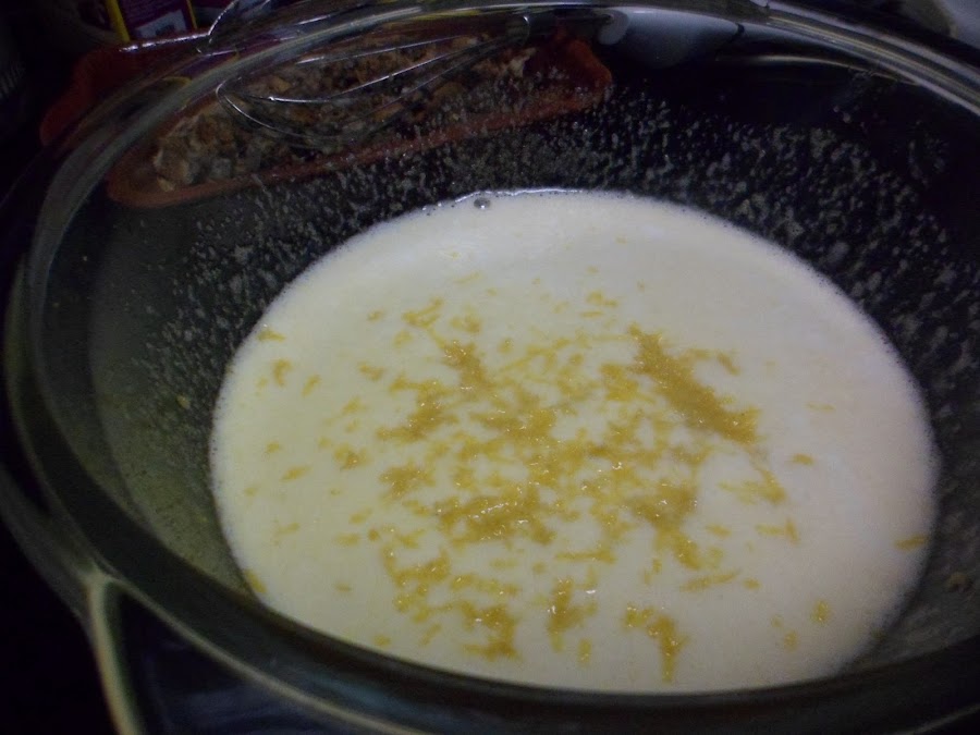 Seguidamente echaremos el agua, la leche, el aceite, el coñac y la ralladura de limón. Batiremos todo.