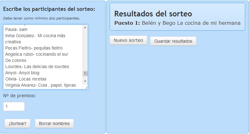 Aquí os dejo el resultado de mi sorteo.