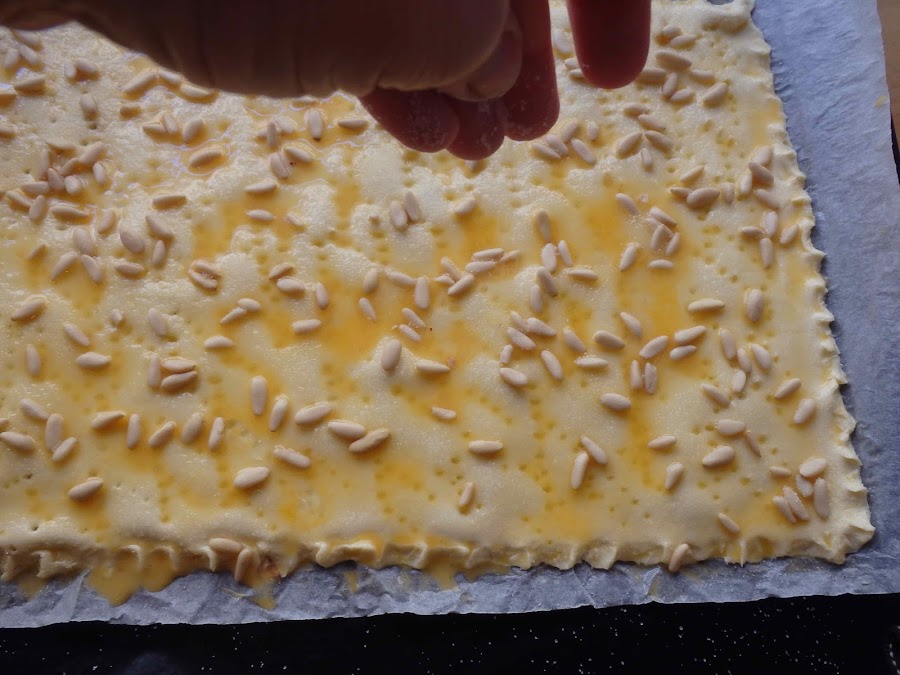 Ahora repartimos los piñones y luego el azúcar por encima, una buena cantidad de azúcar, ¡sin miedo!