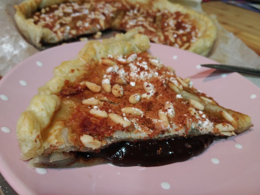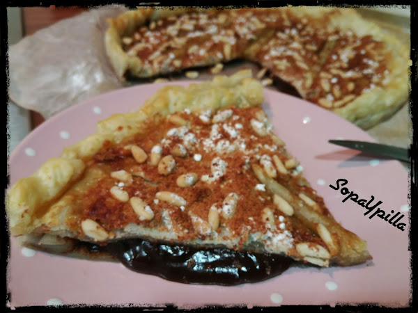 - Repartimos el chocolate en la base de hojaldre, y tapamos con la otra.