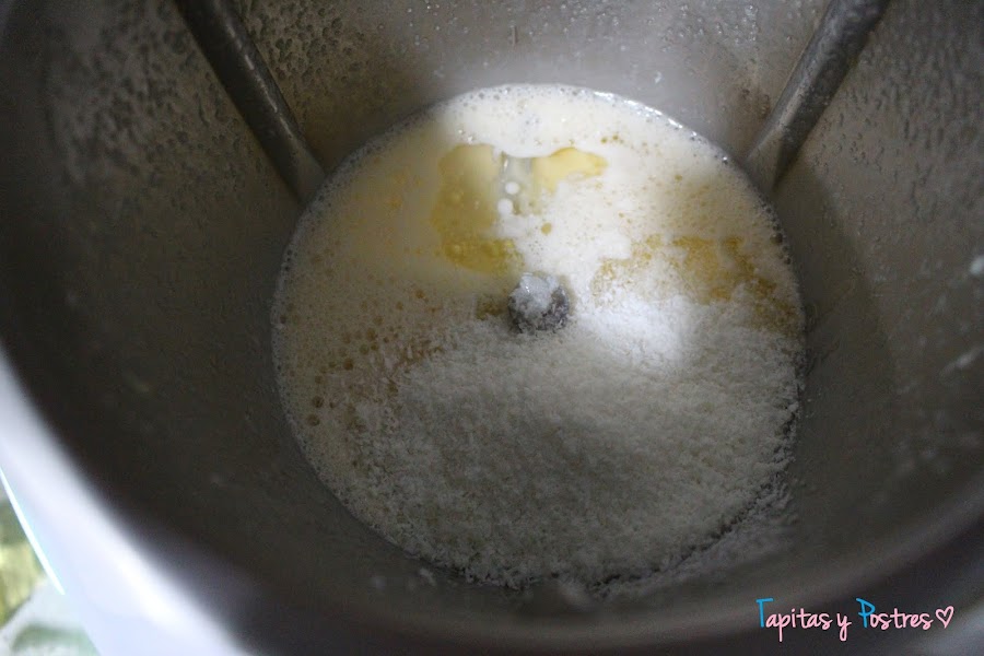 Agregamos el aceite y el coco rallado y volvemos a batir 20 segundos a velocidad 3.