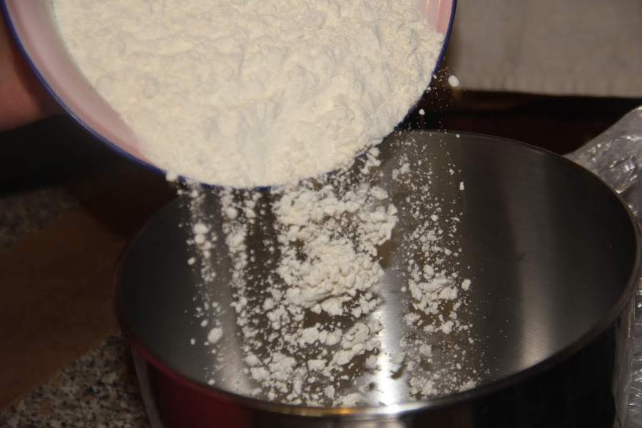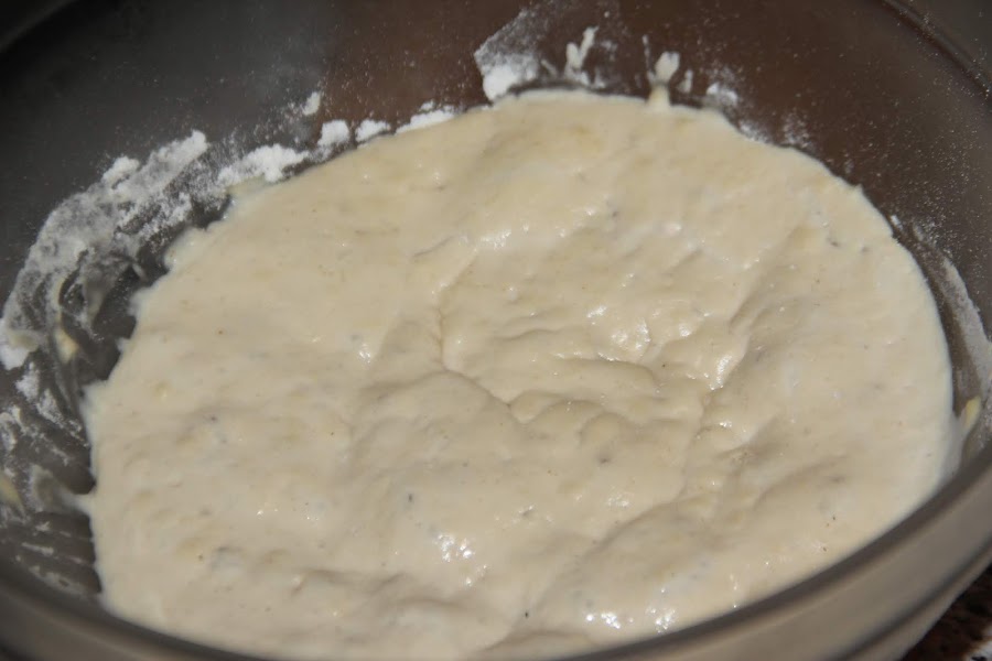 Comenzamos preparando la masa madre. Para ello disolvemos la levadura en la leche tibia, agregamos la harina y dejamos en la nevera un mínimo de doce horas hasta que veamos que aumenta su volumen.