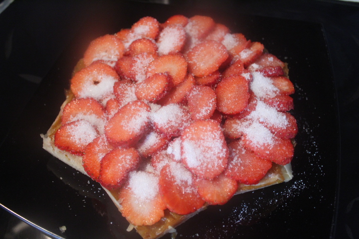 En esta ocasión he adulterado nuevamente una receta de Alicia, convirtiendo su receta en una coca de fresas, del blog “Comememucho”, se trata de su “Coca de manzana de Castellón”.