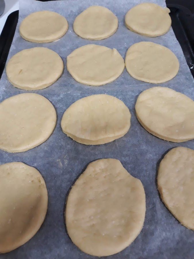 5.- Con un aro de emplatar vamos haciendo porciones que iremos colocando en en una bandeja de horno. Reservamos.