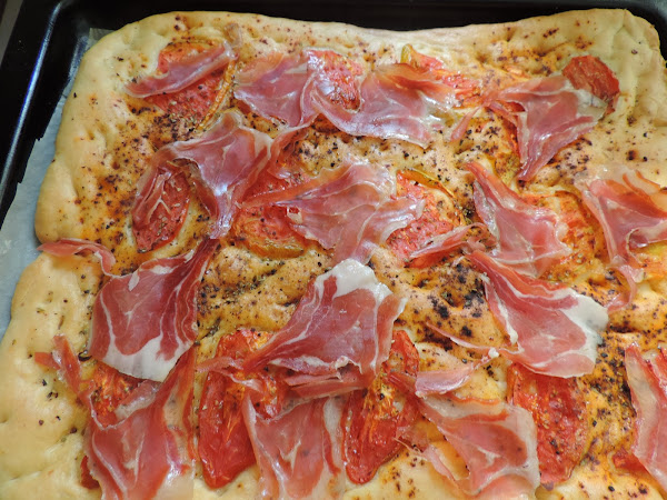Cuando la saquemos del horno, y estando aún caliente le ponemos por encima las lonchas de jamón serrano, y enseguida a disfrutar de esta delicia¡¡¡¡¡¡