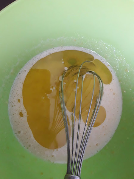 una vez mezclado procederemos a añadir a lo anterior el aceite y mezclamos otra vez con las varillas,