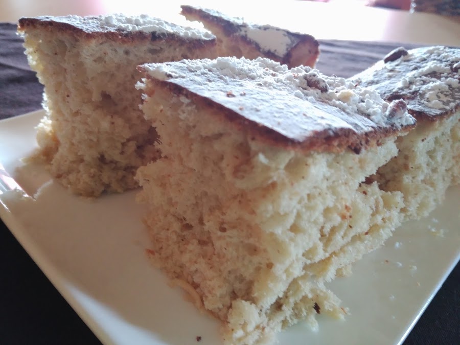 La coca de llardons es el desayuno, postre o merienda típico de Catalunya que se come el jueves lardero. No es casi nada dulce, y hay que ir con cuidadín porqué esta llenita de chicharrones, conocidos mundialmente por encoger la ropa al menos una talla..jiji