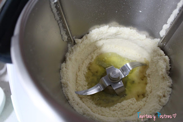 Ahora vamos a preparar un mazapán ligero. Mezclamos la harina de almendra, con 75 gr de azúcar ( los 25 restantes los reservamos), 30 segundos a velocidad 7.