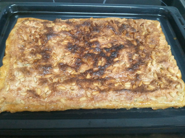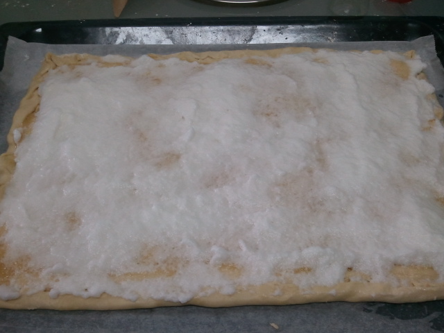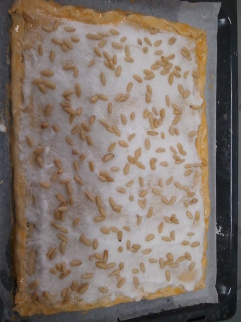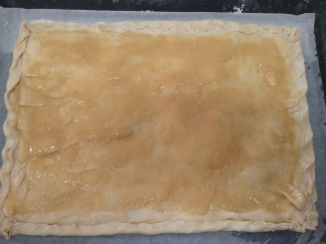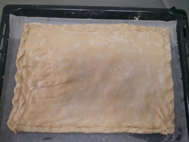 Introducimos la bandeja en el horno durante 25 ó 30 minutos aproximadamente a 180 º hasta que la coca se haga y nos quede algo tostada. De todas formas iremos vigilando para que no se nos queme. Sacamos del horno y dejamos enfriar antes de hincarle el diente!!!